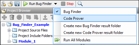 Результаты поиска ошибок (Code Prover) хранятся в .psbf (.pscp) файл в папке результатов. Например, при сохранении проекта в C:\Projects\, a .psbf файл для результатов анализа Bug Finder в первом модуле Module_1 хранится в C:\Projects\Module_1\BF_Result. См. также Содержание проекта и папки результатов.