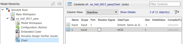 | Идентификатор: Заголовок | hisf_0017: Область объекта данных Stateflow |