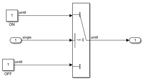 | Примечание | Из-за проблем с точностью с плавающей запятой не проверяйте выражения с плавающей запятой на неравенство ( Когда модель содержит блок Switch, вычисляющий реляционный оператор с помощью | |