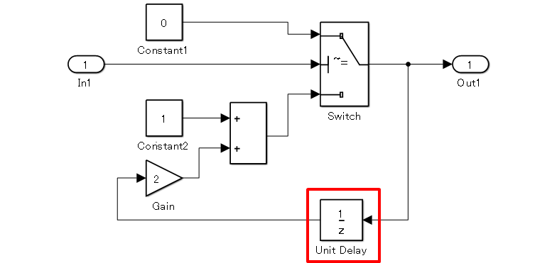 Когда в контуре обратной связи используется функция задержки (Simulink), выходной сигнал может быть слева.
