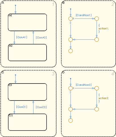 Параллельные и исключительные состояния (Stateflow)