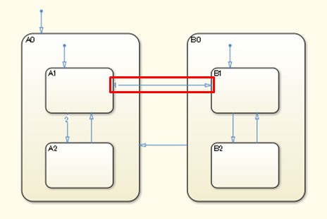 Прямой переход из внешнего дочернего состояния в дочернее состояние в другом состоянии.