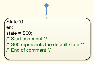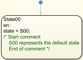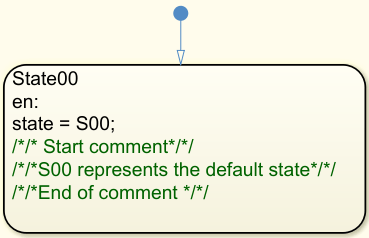 Если для параметра Chart (Stateflow) для параметра Action Language установлено значение MATLAB, комментарии должны использовать %.