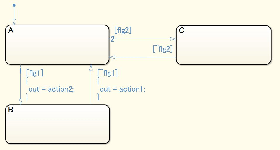 Действия перехода не должны использоваться в диаграмме Stateflow ® (Stateflow).