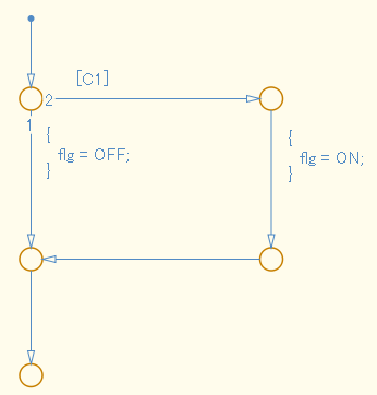 Заказ на выполнение 1 является безусловным переходом и условным выражением [C1] описывается в условии выполнения 2.