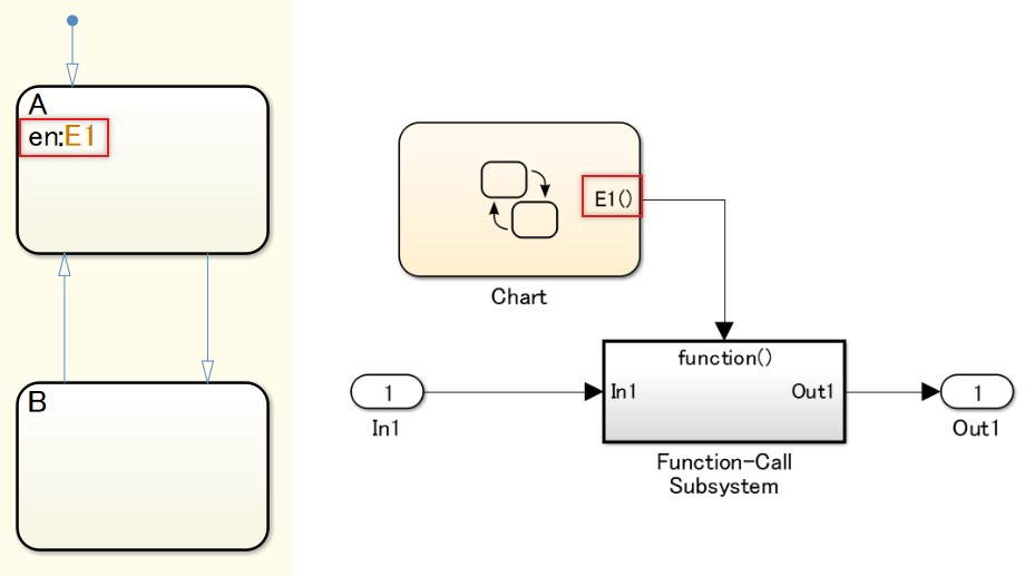 Рекурсивная обработка диаграммы предотвращается с помощью событий Stateflow только в выходных данных диаграммы Stateflow.