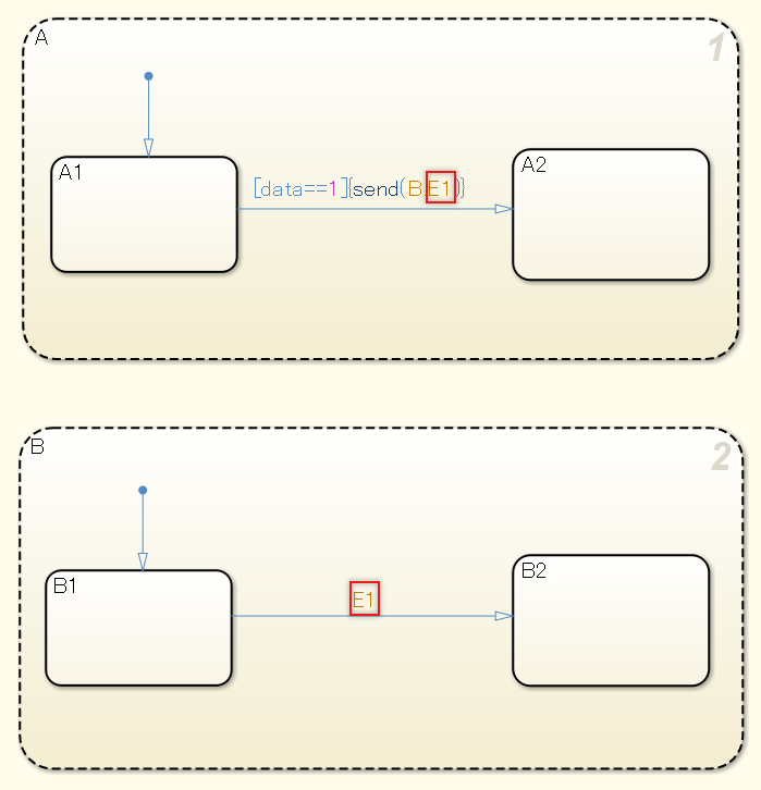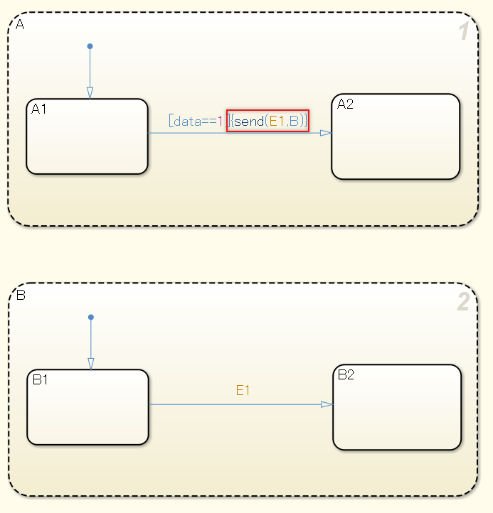 send (Stateflow) синтаксис send(state_name.event_name) с соответствующим именем события используется для трансляции событий Stateflow.