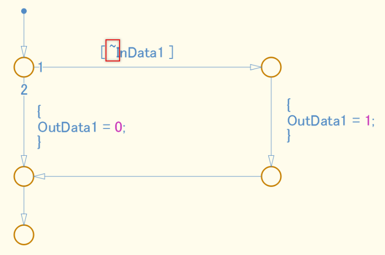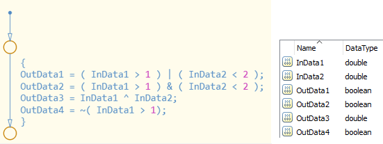 Если для свойства Stateflow Chart (Stateflow) для параметра Action Language установлено значение C, работа ! должен использоваться для логического отрицания.