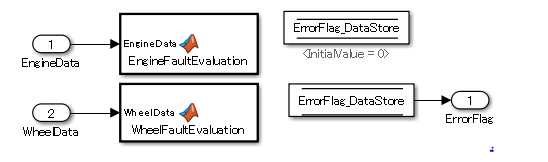 function ErrorFlag = EngineFaultEvaluation(EngineData,ErrorFlag_In) %#codegen RMP_HIGH = 10000; RMP_LOW = 10; HIGHRPMFAULT = 2^1; LOWRPMFAULT = 2^2; ErrorFlag = ErrorFlag_In; if EngineData > RPM_HIGH ErrorFlag = bitor(ErrorFlag,HIGHRPMFAULT); end if EngineData < RPM_LOW ErrorFlag = bitor(ErrorFlag,LOWRPMFAULT); end function ErrorFlag = WheelFaultEvaluation(WheelData,ErrorFlag_In) %#codegen SLIP_HIGH = 1000; WHEELSLIP = 2^3; ErrorFlag = ErrorFlag_In; if WheelData > SLIP_HIGH ErrorFlag = bitor(ErrorFlag,WHEELSLIP); end end