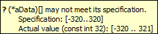 Предположим, в этом вызове Rte_IWrite_step_out_e4второй аргумент указывает на тип данных, который должен подчиняться ограничению данных. Анализ проверяет возможность нарушения ограничения во время выполнения.