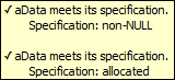 Используя информацию на панели Сведения о результате (Result Details), определите, нарушает ли аргумент ограничения данных в спецификациях AUTOSAR XML или может иметь значение NULL. Ищите! значок, который указывает на определенную ошибку или? значок, указывающий на возможную ошибку.
