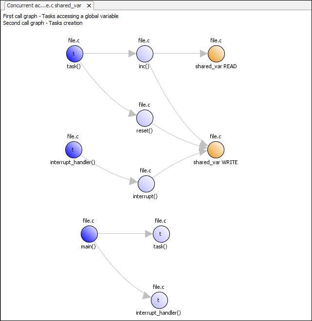 Critical section details (-critical-section-begin -critical-section-end) | Multitasking | Shared variable | Show global variable sharing and usage only (-shared-variables-mode) | Tasks (-entry-points) | Temporally exclusive tasks (-temporal-exclusions-file) | Unused variable | Used non-shared variable