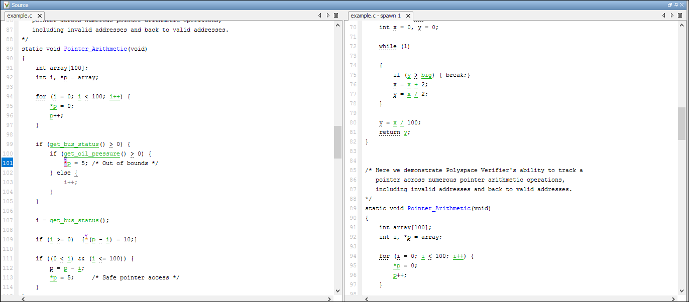 В этом разделе показано, как просмотреть результаты проверки кода в пользовательском интерфейсе настольных продуктов Polyspace. Сведения о том, как просматривать результаты в веб-интерфейсе Polyspace Access, см. в разделе Интерпретация результатов проверки кода в веб-интерфейсе Polyspace Access (Polyspace Code Prover Access).