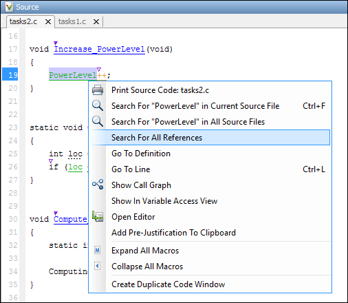 Щелкните правой кнопкой мыши имя переменной на панели Источник (Source) и выберите Поиск всех привязок (Search For All References). Либо дважды щелкните переменную. Эти параметры выполняют более чем строковое соответствие. Параметры показывают только экземпляры определенной переменной, но не другие переменные с таким же именем в других областях.