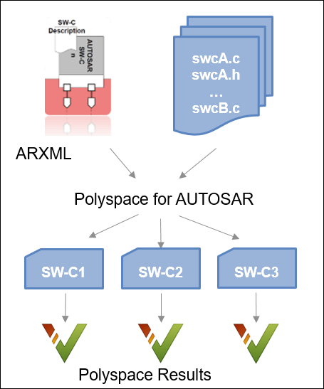 Polyspace for AUTOSAR считывает спецификации ARXML, которые предоставляются, и модулирует анализ на основе программных компонентов в спецификациях ARXML. Затем анализ проверяет каждый модуль на наличие: