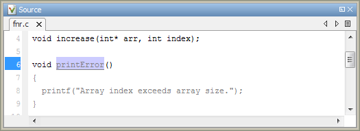 Выберите флажок на панели Список результатов (Results List). На панели Источник (Source) можно увидеть определение функции серым цветом.