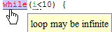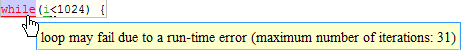 Если переменная управления контуром передается функции, проверьте, можно ли связать красную ошибку «Non-terminating loop» с оранжевой ошибкой в теле функции.