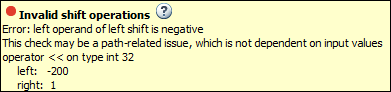 Если необходимо разрешить операцию в Polyspace, используйте опцию анализа Разрешить отрицательный операнд для левых смен. Посмотрите Allow negative operand for left shifts (-allow-negative-operand-in-shift).