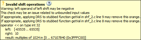 Если левый операнд операции левого сдвига может быть отрицательным, отслеживайте поток данных для переменной левого операнда. Определите подходящую точку, в которой можно ограничить переменную левого операнда.