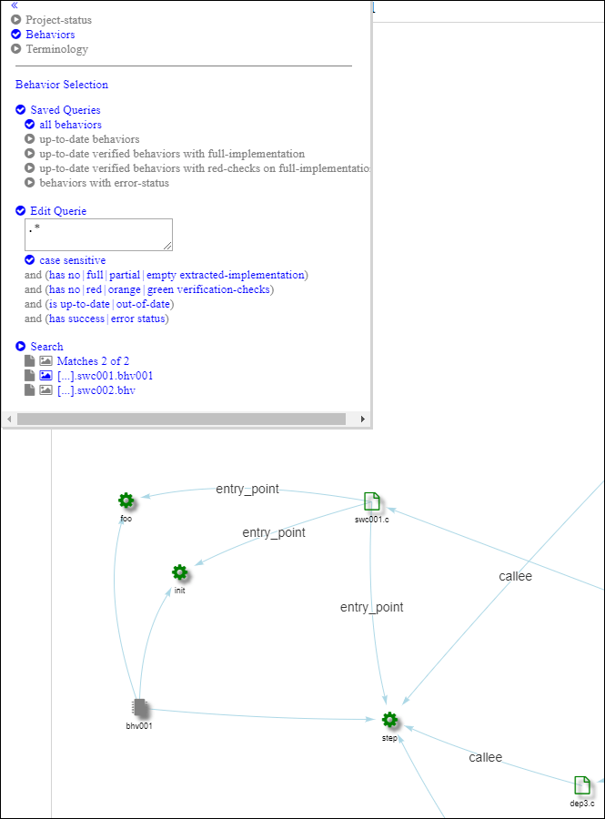 В этом примере показано, что компонент программного обеспечения имеет внутреннее поведение. bhv001 имеет три runnables, реализованные посредством функций начальной точки foo, init, и step. Все три функции точки входа определены в файле swc001.c.