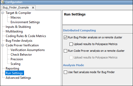 Перед разгрузкой анализа из пользовательского интерфейса настольных продуктов Polyspace необходимо настроить исходные файлы проекта, параметры анализа и параметры удаленного анализа. Если вы еще не сделали этого, для получения дополнительной информации: