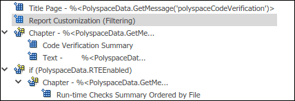 В этом разделе показаны некоторые настройки шаблона отчета Polyspace ® с краткими шагами. Более подробное учебное пособие см. в разделе Настройка существующего шаблона отчета программы проверки кода.