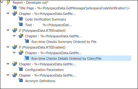 User assertion чтобы определить, assert условие выходит из строя. Предположим, что вы хотите сообщить об этих проверках в отдельной главе, поскольку они отличаются от других проверок ошибок во время выполнения.Начните с шаблона разработчика. Создание копии главы, содержащей компонент Run-time Checks Details Ordered by Color/File.
