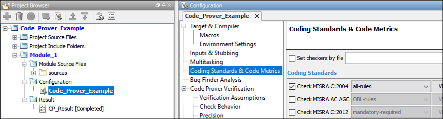 proj = polyspace.Project; proj.Configuration.CodingRulesCodeMetrics.EnableMisraC3 = true; proj.Configuration.BugFinderAnalysis.EnableCheckers = false;