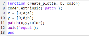 Генератор кода автоматически обрабатывает многие общие функции визуализации MATLAB, такие как plot, disp, и figure, как внешний. Нет необходимости явно объявлять их как внешние функции с помощью coder.extrinsic.