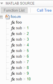 В отчете по созданию кода на закладке Список функций отображаются специализации функций для функции MATLAB. sub.