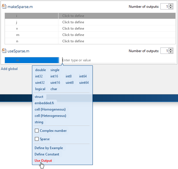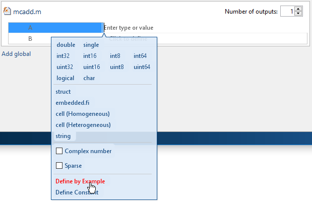 Кроме того, можно указать переменный размер ввода с помощью coder.newtype функция. Введите выражение MATLAB: