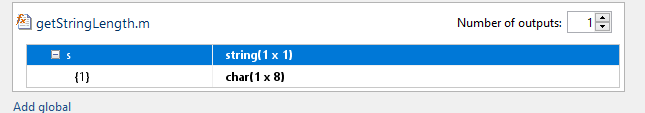 Входной параметр представляет собой строковый массив 1 на 1 (строковый скаляр), содержащий символьный вектор 1 на 8.