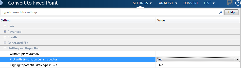 Инспектор данных моделирования (Simulink) с приложением MATLAB ® Coder™ можно использовать для проверки и сравнения входных и выходных данных с плавающей и фиксированной точками.