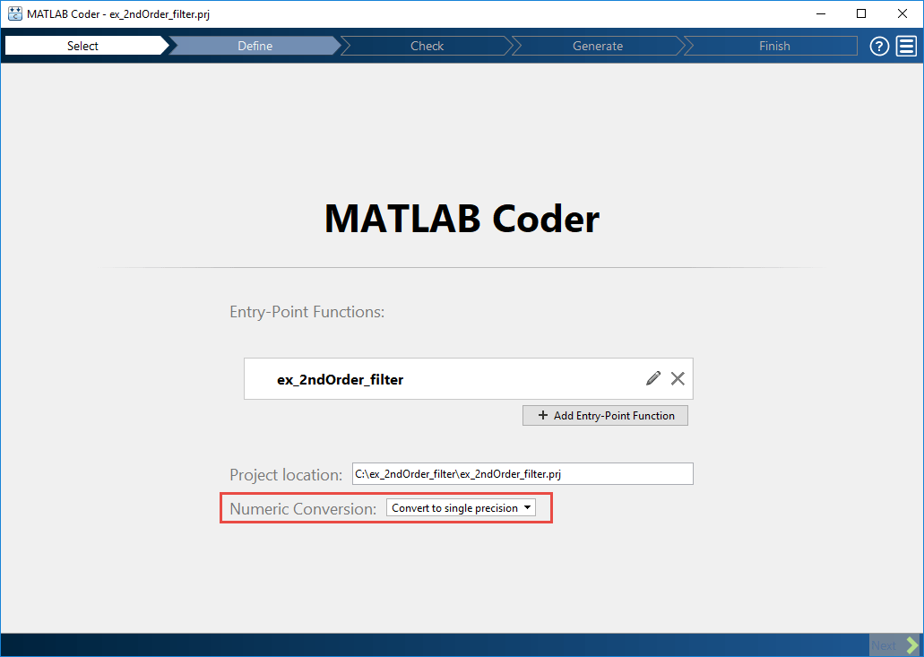 В этом примере показано, как создать код C с одинарной точностью из кода MATLAB ® с двойной точностью с помощью приложения MATLAB Coder™.