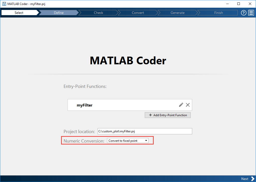 Нажмите кнопку Далее (Next), чтобы перейти к шагу Преобразовать в фиксированную точку (Convert to Fixed Point).