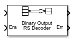 Блок RS-декодера двоичного выхода восстанавливает вектор двоичного сообщения из вектора двоичного кодового слова Рида-Соломона. Для правильного декодирования значения параметров в этом блоке должны совпадать со значениями параметров в соответствующем блоке RS-кодера двоичного ввода.