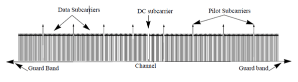 Существует три типа поднесущих OFDM: данные, пилот-сигнал и нуль. Поднесущие данных используются для передачи данных, в то время как поднесущие пилот-сигнала используются для оценки канала. Нет передачи на нулевых поднесущих, которые используются для обеспечения DC null, а также для обеспечения буферов между блоками ресурсов OFDM. Эти буферы называются защитными полосами, целью которых является предотвращение межсимвольных помех. Распределение нулей и защитных полос изменяется в зависимости от стандарта, например, 802.11n отличается от LTE. Следовательно, объект модулятора OFDM позволяет пользователю назначать индексы поднесущих по мере необходимости.