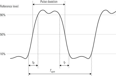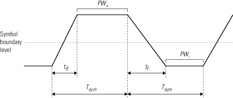 Программное обеспечение вычисляет DCD с учетом tR, tF, tym. Эта формула предполагает, что граничный уровень символа равен нулю.