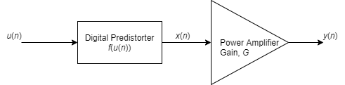 Цель цифрового предыскажения состоит в том, чтобы найти нелинейную функцию, которая линеаризует суммарный эффект нелинейного поведения ПА на выходе ПА в рабочем диапазоне ПА. Когда вход PA равен x (n), а функция предыскажения равна f (u (n)), где u (n) является истинным сигналом, подлежащим усилению, выход PA приблизительно равен G × u (n), где G является желаемым усилением амплитуды PA.