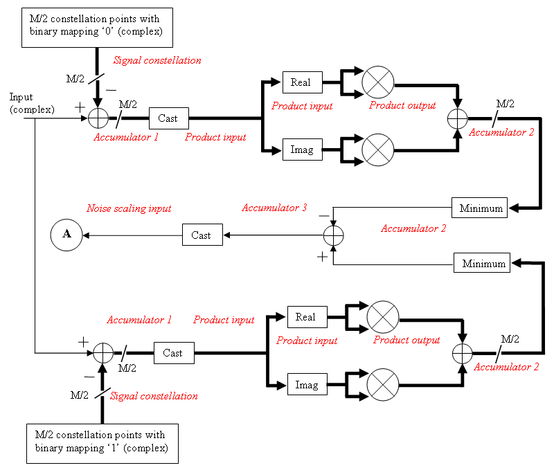 Блок-схема сигналов с фиксированной точкой для примерного режима LLR: режимы работы с дисперсией шума