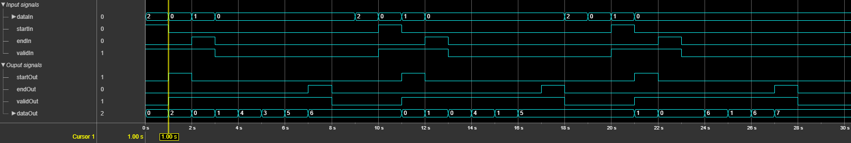 На этом рисунке показан пример выходных данных блока оптимизации HDL кодера RS с целочисленным входом с конфигурацией по умолчанию.