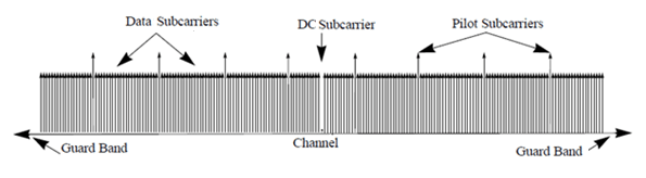 Как показано здесь, поднесущие обозначаются как поднесущие данных, DC, пилот-сигнала или защитной полосы.