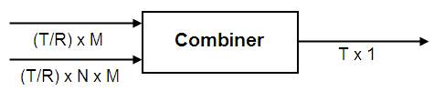 Блок объединения OSTBC объединяет входной сигнал (от всех приемных антенн) и сигнал оценки канала для извлечения мягкой информации символов, которые были закодированы с использованием OSTBC. Оценка входного канала не может быть постоянной во время передачи каждого блока кодового слова, и алгоритм комбинирования использует только оценку для первого периода символа на блок кодового слова. Демодулятор или декодер символов должен следовать за объединительным блоком в системе связи MIMO.