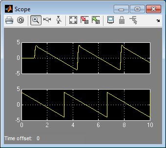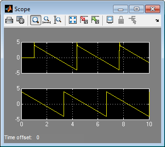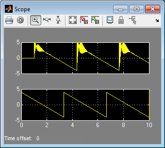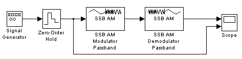 Следующий пример модулирует сигнал пилообразного сообщения, демодулирует результирующий сигнал с помощью фильтра Баттерворта и строит график исходных и восстановленных сигналов. Фильтр Баттерворта реализован в блоке полосы пропускания демодулятора SSB AM.
