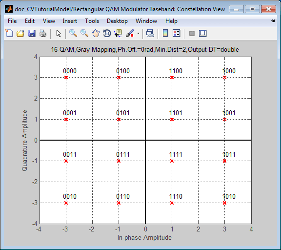 Дважды щелкните блок основной полосы частот модулятора прямоугольного QAM.