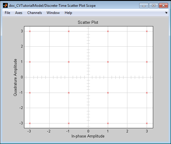 Во время моделирования щелкните Вид (View) Созвездие (Constellation). Сравните совокупность сигналов с графиком рассеяния, сформированным на предыдущем шаге.