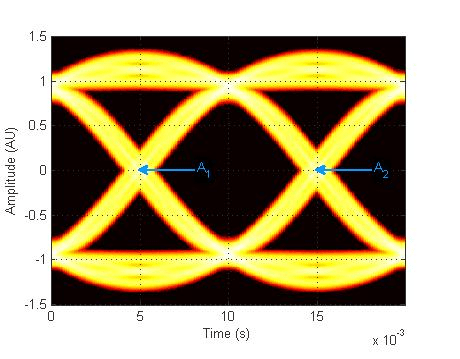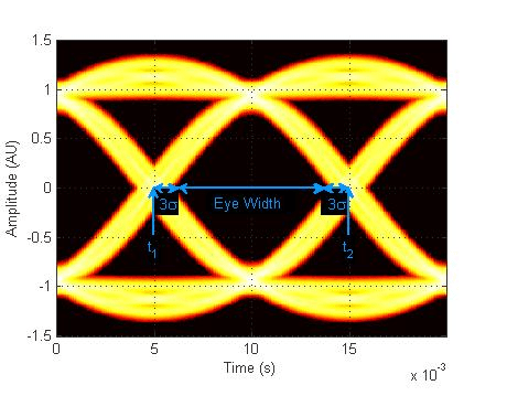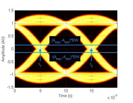 Область находится в диапазоне от -Atotal * BW до + Atotal * BW, где Atotal - диапазон общей амплитуды диаграммы глаз (т.е. A total = A max - Amin), а BW - ширина полосы пересечения.