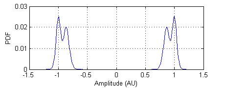Для сигнала NRZ существует только два уровня: высокий уровень (уровень 1 на рисунке) и низкий уровень (уровень 0 на рисунке). Высота глаз - это разность двух точек 3λ. Точка 3λ определяется как точка, которая представляет собой три стандартных отклонения от среднего значения PDF.