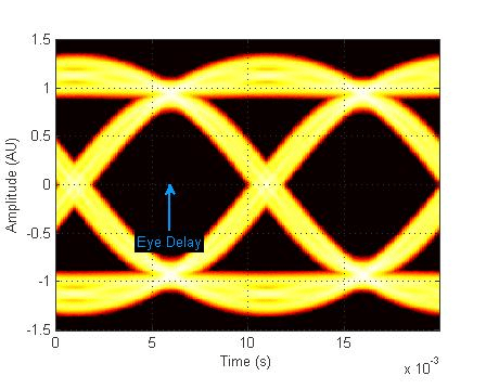 Задержка глаза - расстояние от средней точки глаза до начала времени, измеренное в секундах. Метод анализа вычисляет это расстояние с использованием времени пересечения. Для симметричного сигнала EyeDelay также является лучшей точкой выборки.