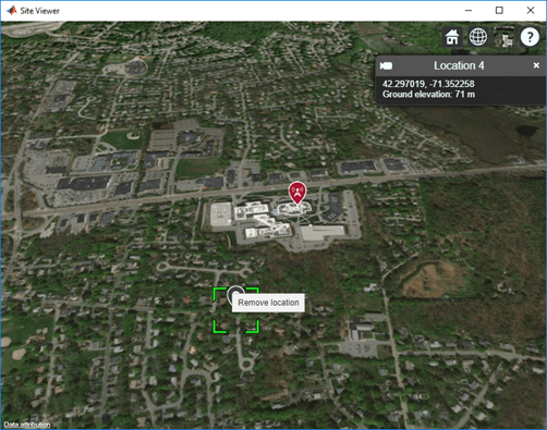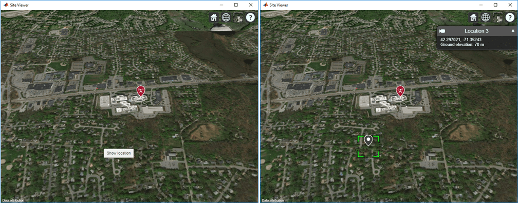 Станции передатчика и приемника для визуализации распространения радиочастоты включают в себя отображение карты, называемое Site Viewer. Кнопку «Главная» можно использовать для просмотра исходного расположения по умолчанию для средства просмотра сайтов.